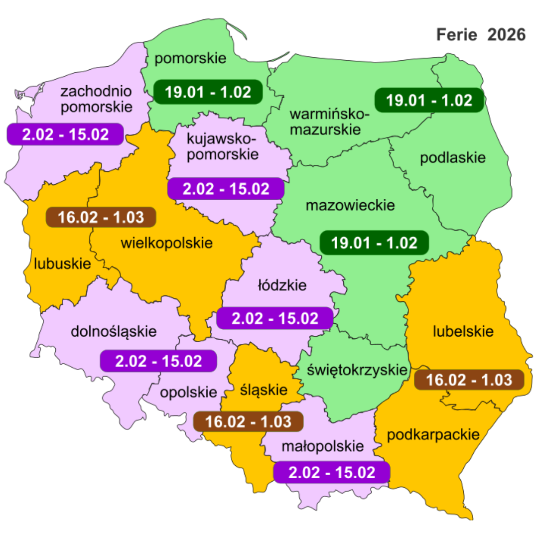 TERMINY FERII ZIMOWYCH 2026